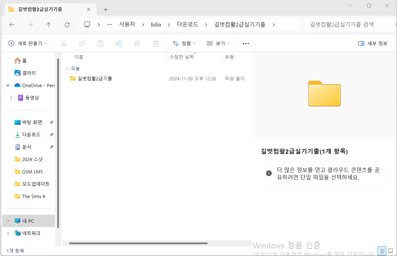 기출2급기출.exe 실행파일을 클릭하여 실행하라고 하는데 파일 자체가 보이지 않습니다. 여러번 다운로드해서 압축을 풀어도 그대로 입니다. 어떻게 해야하나요?