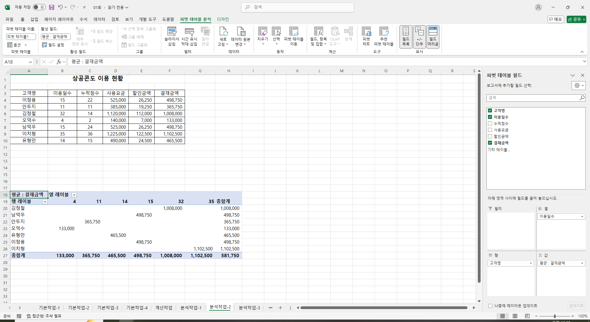 -피벗 테이블 결과 X [D20]에서의 값이 (1,008,000)로 정답(1008000)과 다릅니다.