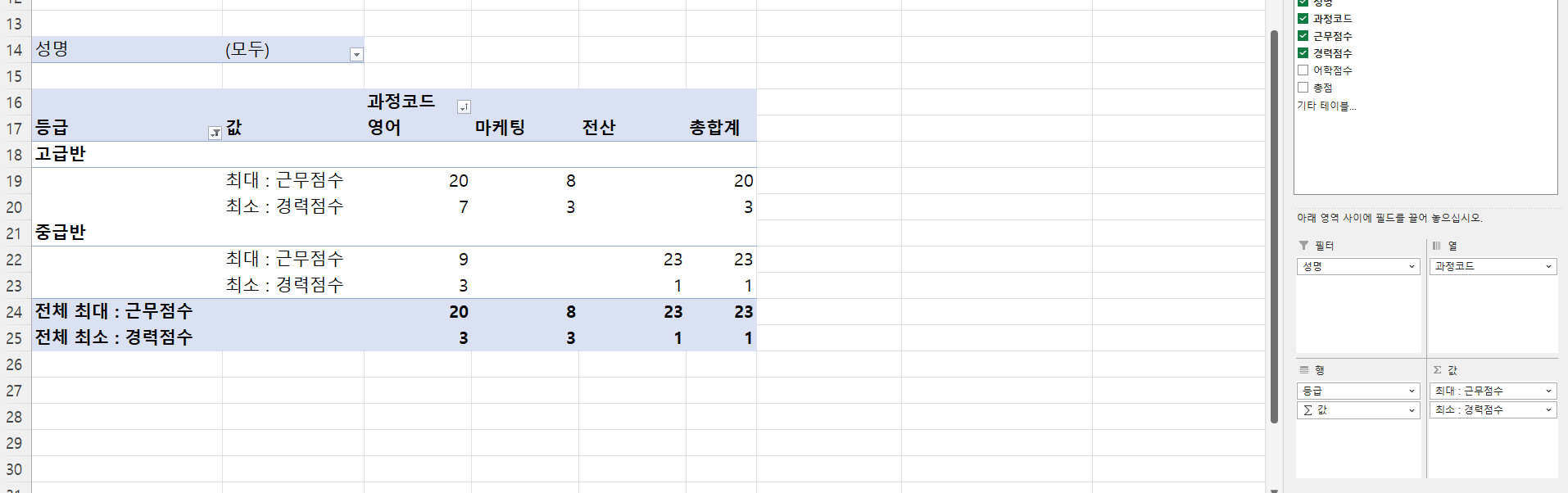 피벗테이블 순서를 바꾸는법을 모르겠습니다.