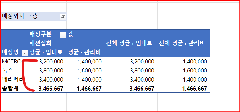 피벗테이블 값 서식 오류 확인부탁드립니다