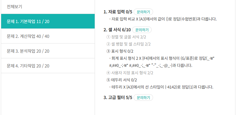 저희 채점 프로그램은 정답 파일과 다르면 감점되나 실제 시험장에서는 문제의 지시사항을 만족하고 결과가 정상적으로 실행되면 모두 맞는 것으로 지정됩니다.