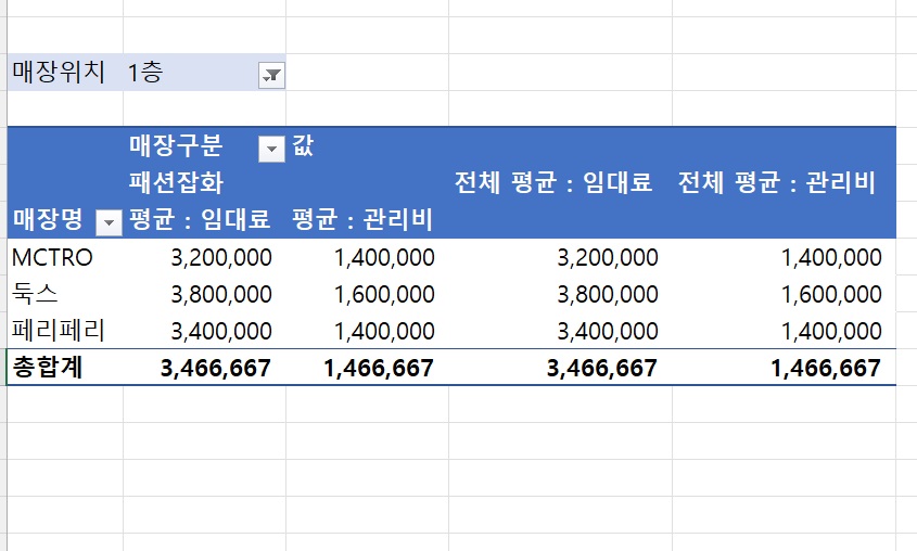 최근에 오피스 프로그램이 자동 업데이트 되면서 표시 형식이 지정된 상태로 피벗 테이블이 작성되고 있습니다. 하지만 실제 시험장에서는 교재와 동일하게 표시 형식이 지정되지 않은 상태로 피벗 테이블이 작성되니 그 상태 그대로 두면 됩니다.