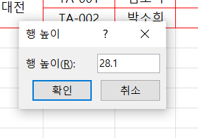 -행 높이 X [A1]에서의 값이 (28.25)로 정답(28)과 다릅니다.