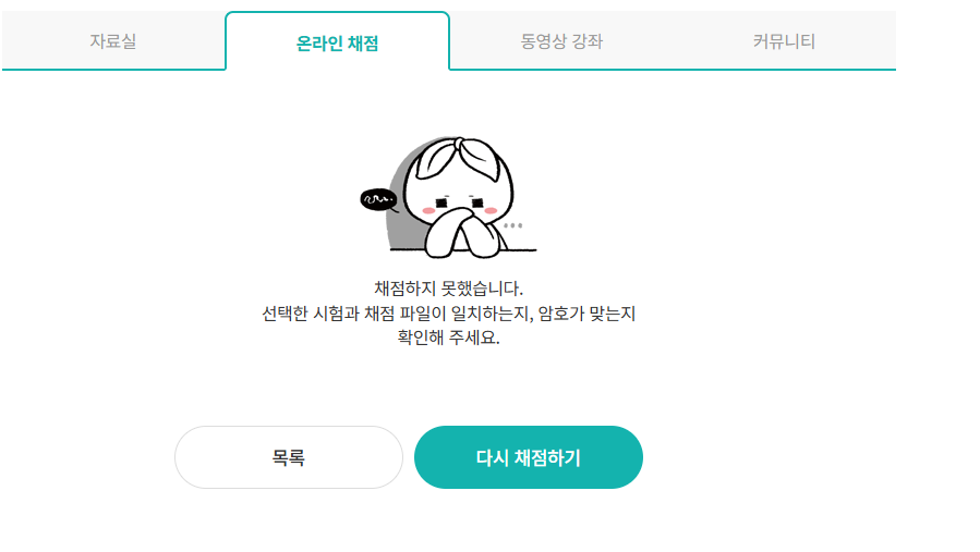 어떨땐 파일 명(ex : 09 23년2급상시01)에서 앞에 숫자 2개(09)를 제거해야 채점이 되는 경우도 있었습니다...ㅠㅠ