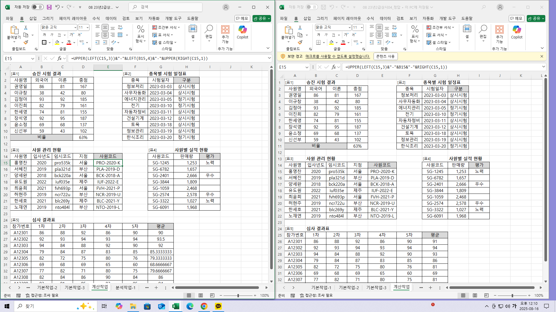 시나공 책정답은 =UPPER(LEFT(C15,3)&"-"&B15&"-"&RIGHT(C15,1))