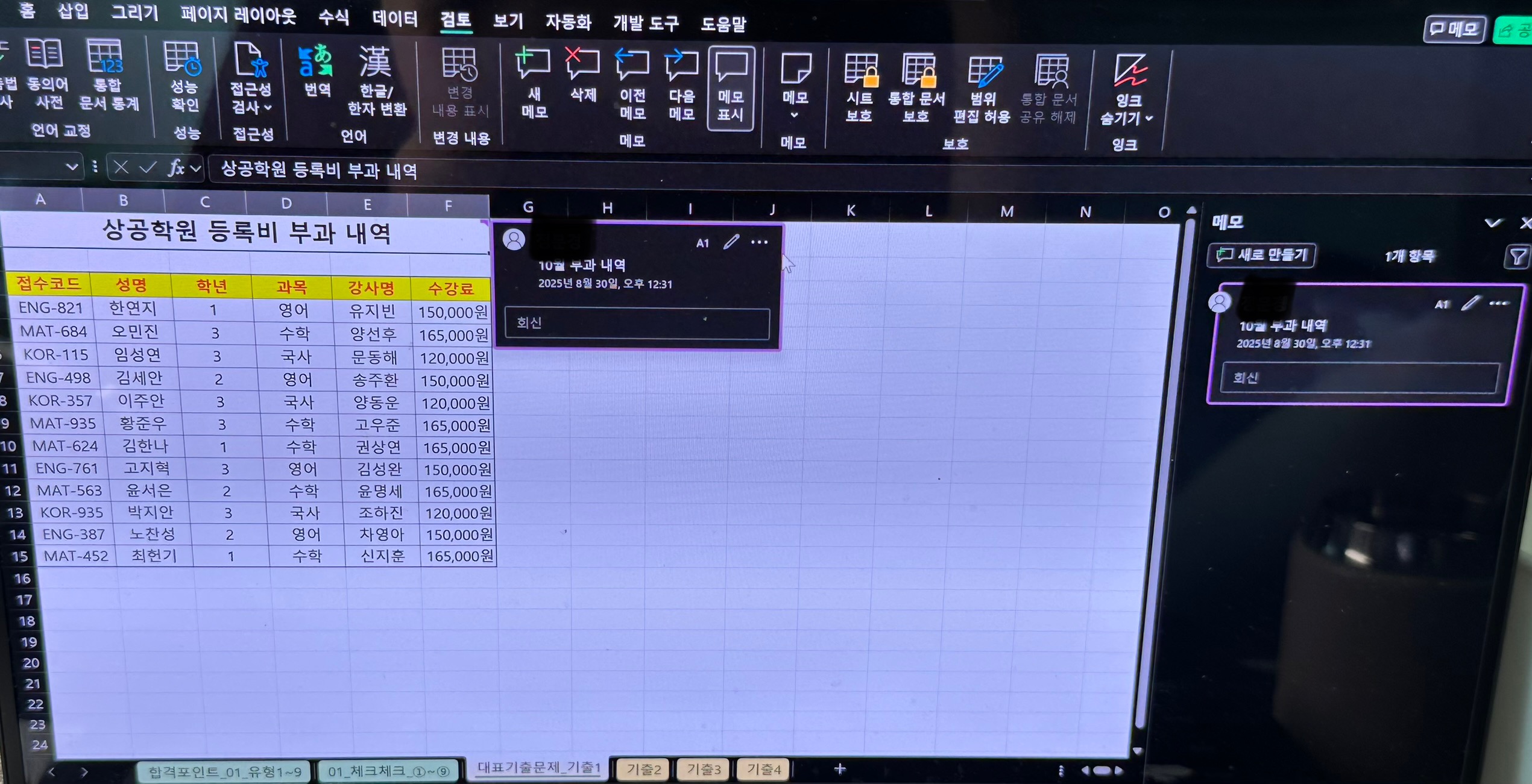 메모 삽입 및 메모 서식