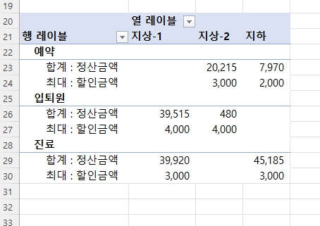 -피벗 테이블 결과 X [C23]에서의 값이 (20
