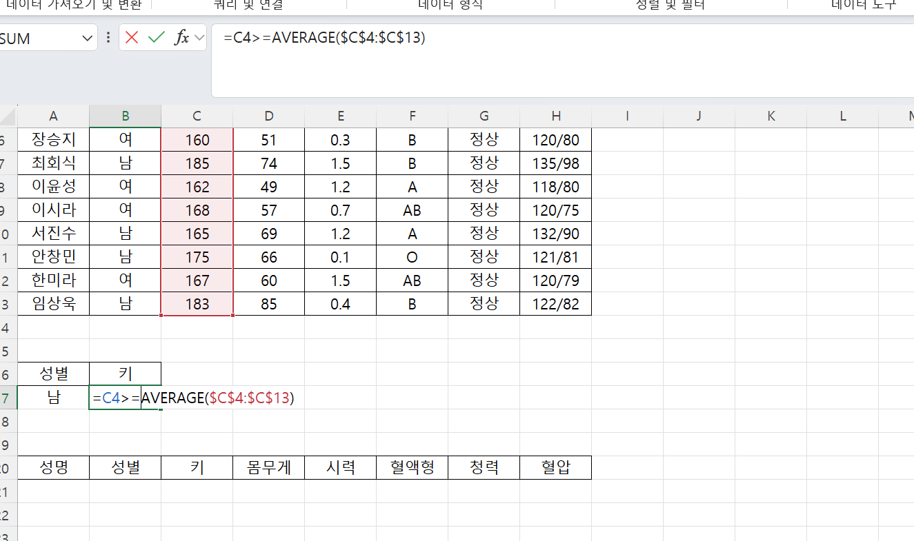 [B6] 셀을 "조건"이라고 입력하고 수행해 보세요.