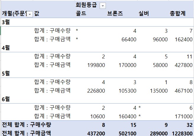 그룹화를 월 단위로 하면 개월(주문일자)로 바뀌는데 어떻게 해야할까요??