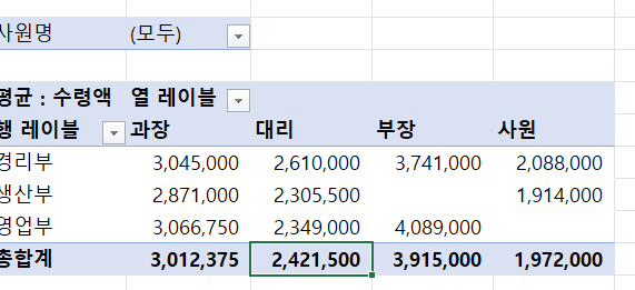 피벗 테이블 채점오류