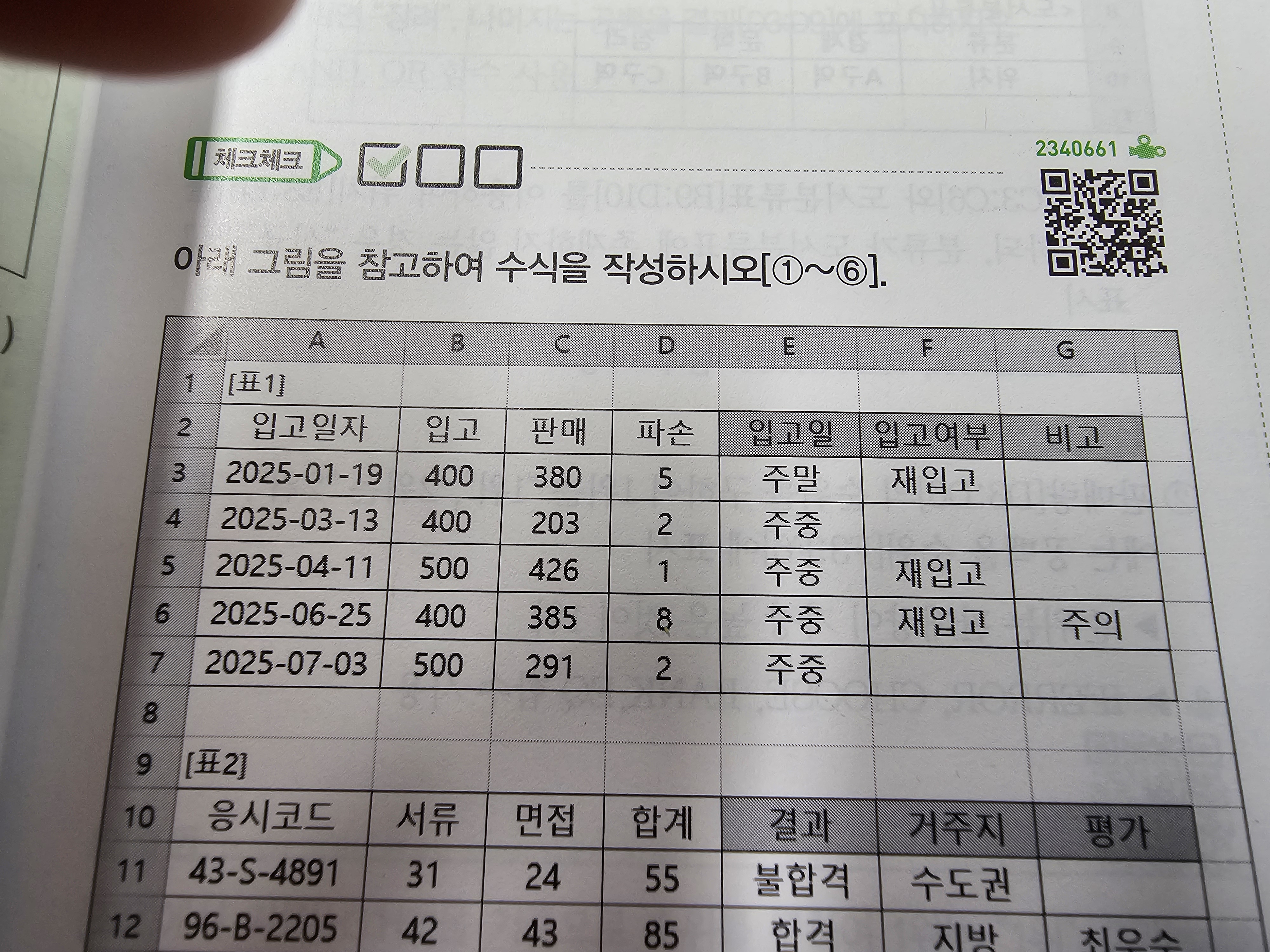 입고일자가 달라서 결과가 다르게 나온 것입니다. 교재는 입고일자가 2025-01-19인데, 동영상은 2021-01-19입니다.