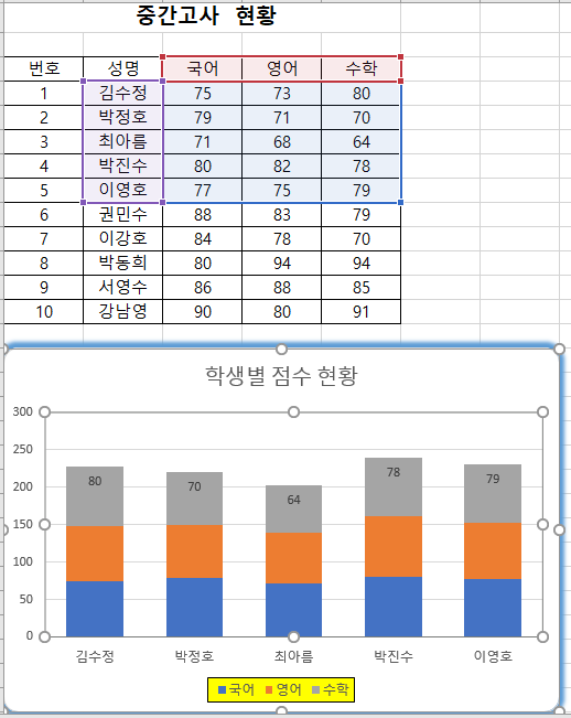 문제에 제시된 차트 그림과 동일하게 수정되었다면 실제 시험장에서는 이런 경우 맞는 것으로 채점됩니다.