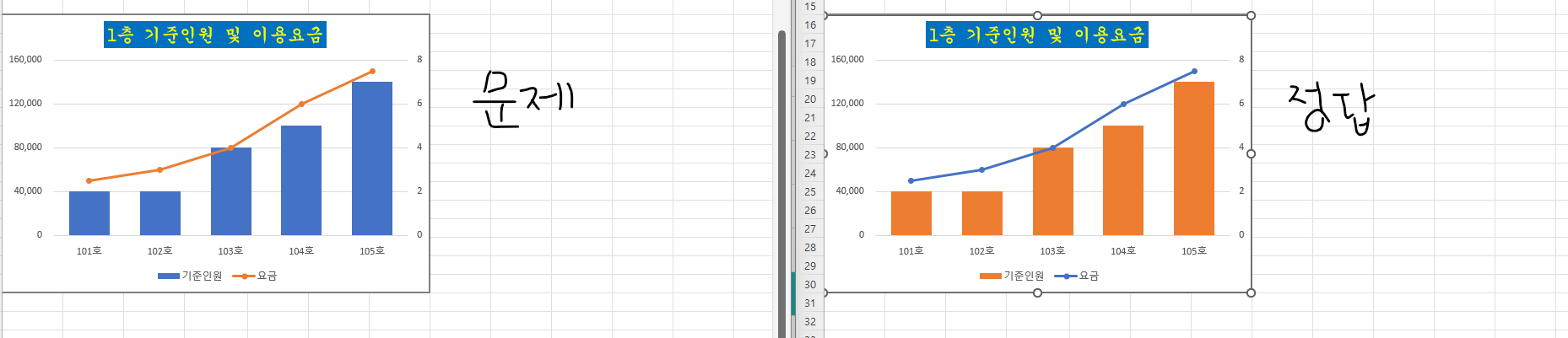 -데이터 비교 X 계열의 데이터가 다릅니다.
