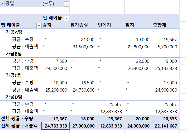-피벗 테이블 결과 X [B35]에서의 값이 (#########)로 정답(24