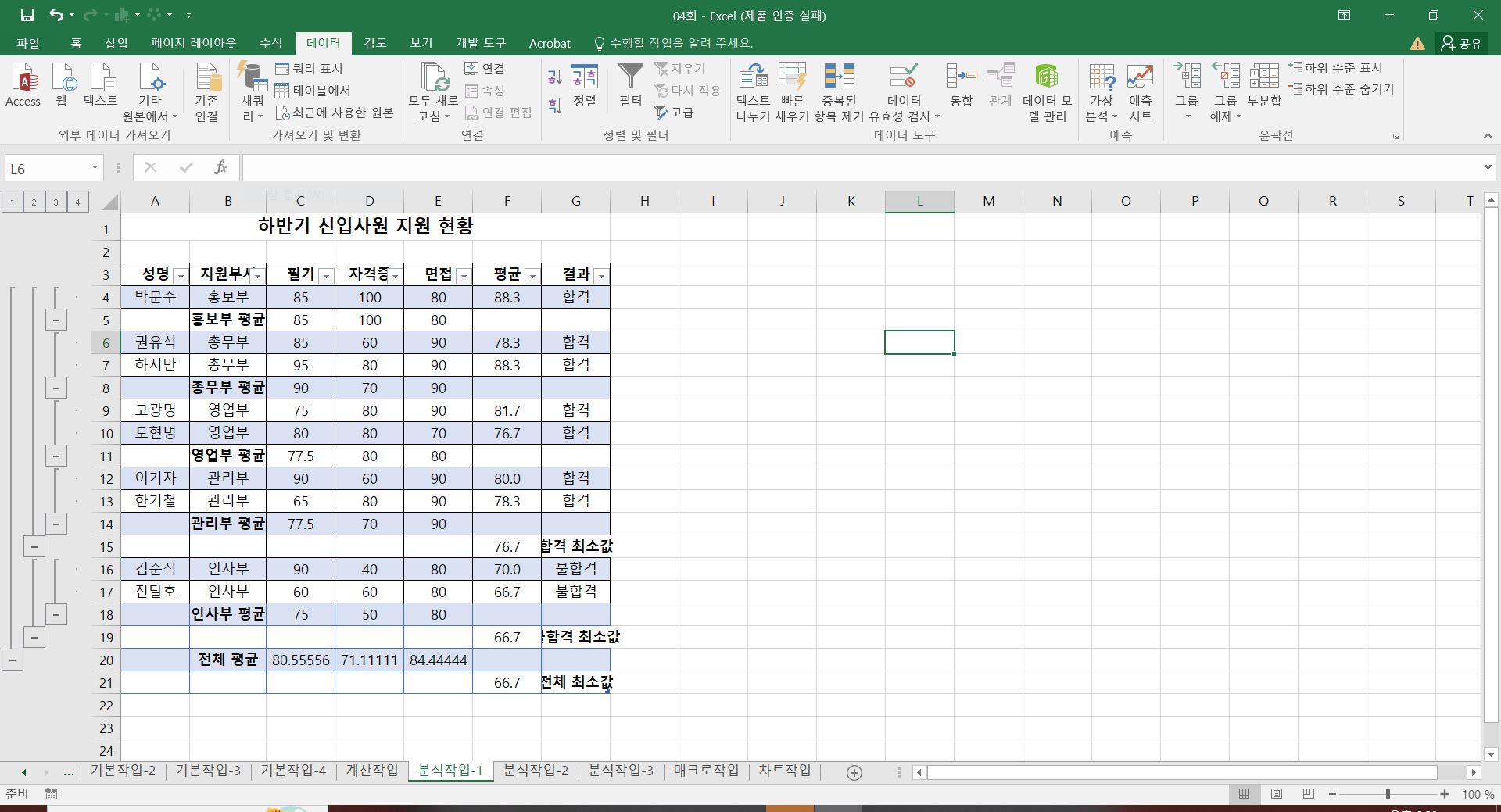 -부분합 결과 X [G15]에서의 값이 (합격최소값)로 정답(합격최소)과 다릅니다.