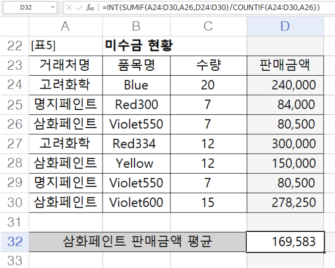 376페이지 5번 sumif랑 countif문제를 푸는 과정에서 조건을 "삼화페인트"로 적지 않고, 삼화페인트가 써 있는 셀인 A26셀을 클릭하여 조건을 지정하였는데, 시험장에서는 이를 감점 사유로 보는지 궁금합니다. 결과적으로는 값이 동일한데, 함수 조건 지정을 다르게 했으므로 틀렸다고 할 지 궁금합니다.