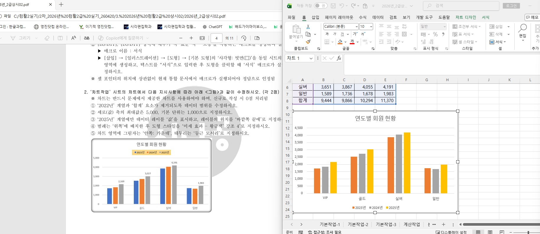 2차_2026년 컴활2급 실기_260420/3. 2026년 컴활2급 상시02 의 차트문제에서 문제지 엑셀의 차트와 원래 주어진 답 입력 차트의 데이터 색상이 달라요.