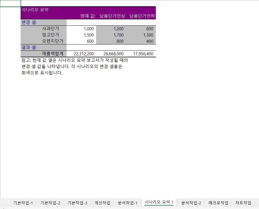 -시트 위치 X [시나리오 요약] 시트가 없습니다.