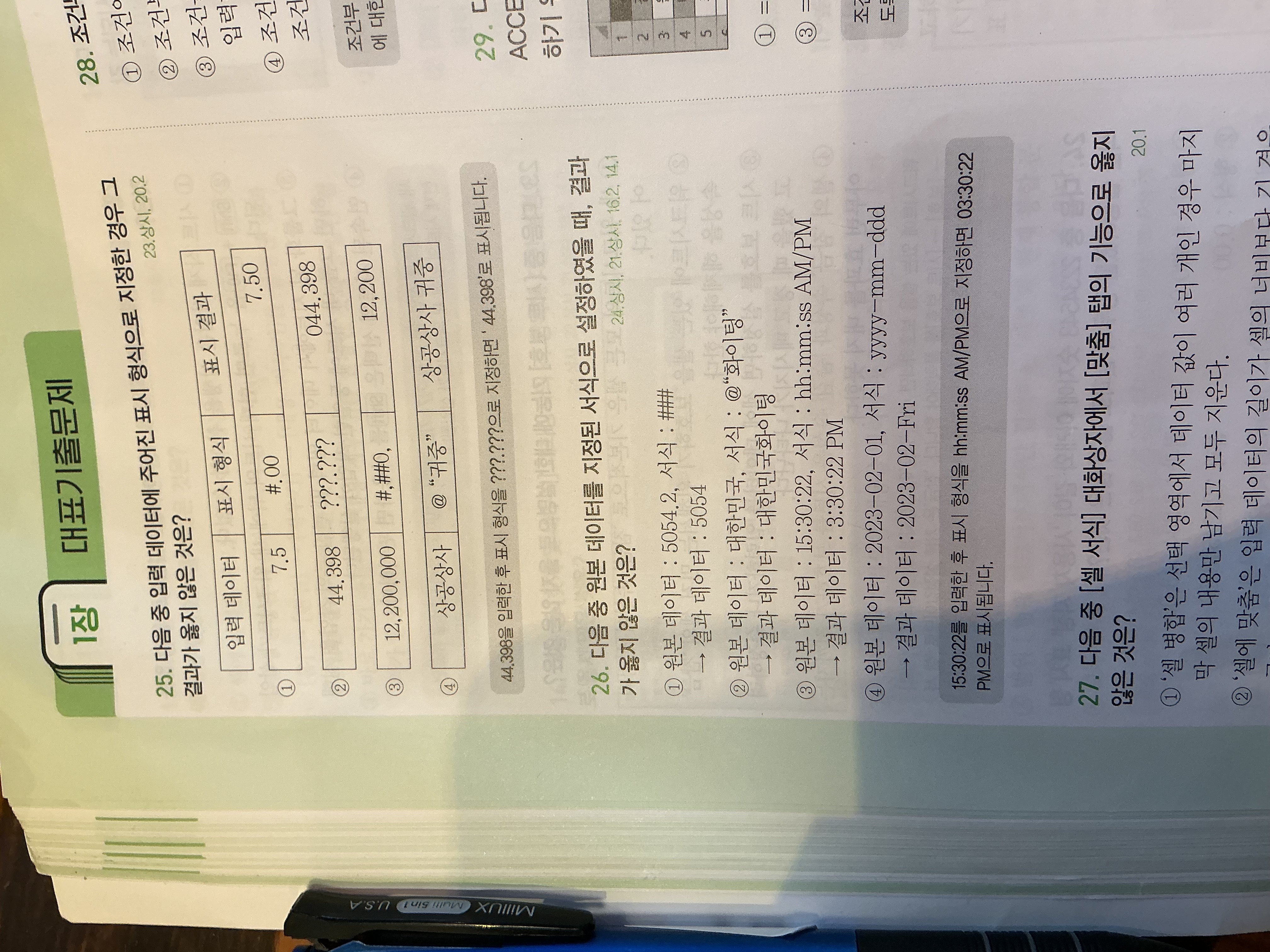 선택지 1번은 시간이 1자리로 표시되어 틀린 것입니다.