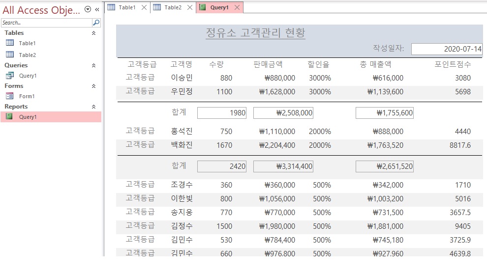 보고서작성을 끝나고 보니까 고객등급이 나눠져있지 않고 할인율(%)부분이 잘못되어있더라구요ㅠㅠㅠ
