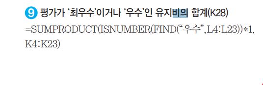 지문은 최우수이거나 우수인 유지비의 합계를 구하라고 나오는데