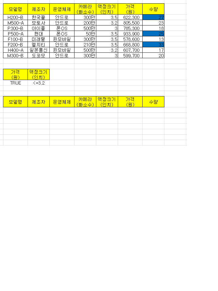 정답대로 입력하면 고급 필터 답과 동일하게 나오지 않습니다.