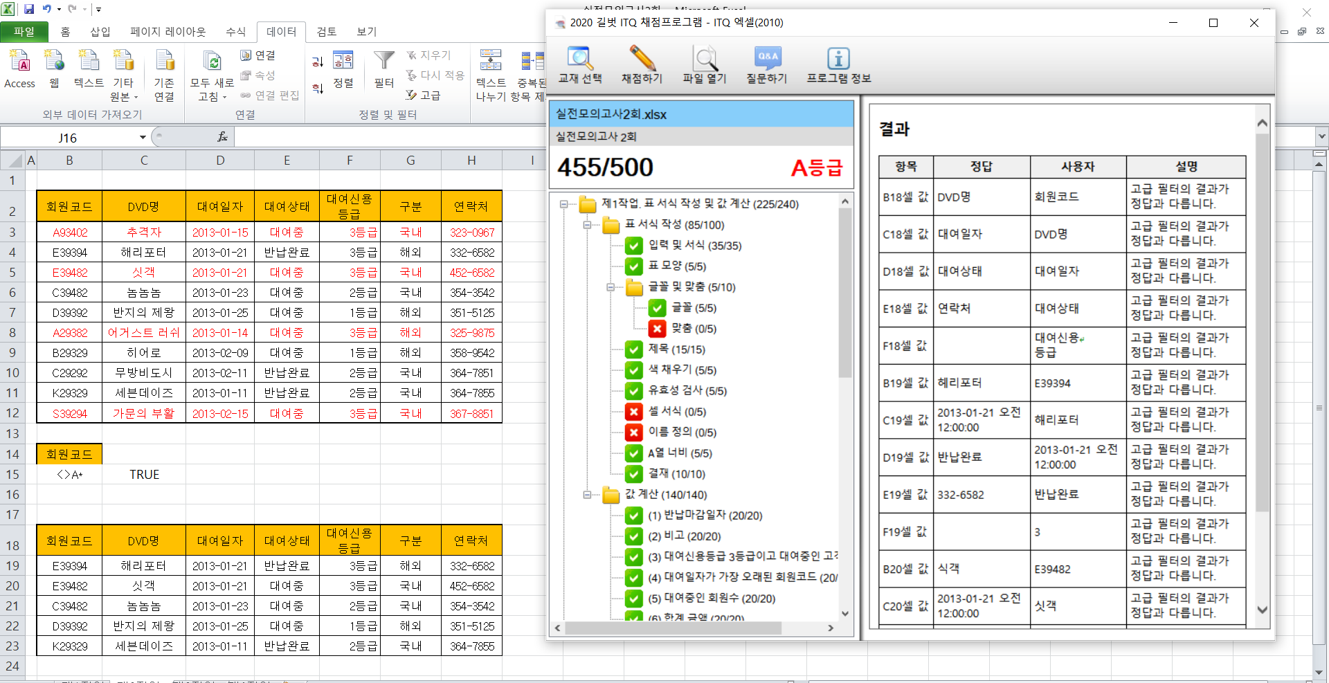 추가 질문이 있는데 [텍스트 맞춤]에서 가운데로 설정했는데 균등분할이라고 틀렸다고 채점되는데 상관없는건가요? 또한 셀서식에서 단위표기할 때 해설에서는 0"등급"으로 나왔는데 저는 General"등급"으로 해서 틀린 것으로 나오는데 이렇게 하면 안되나요?