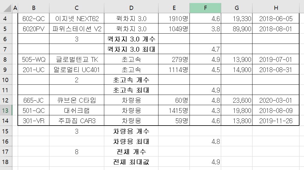 ex) 퀵차지 3.0 개수