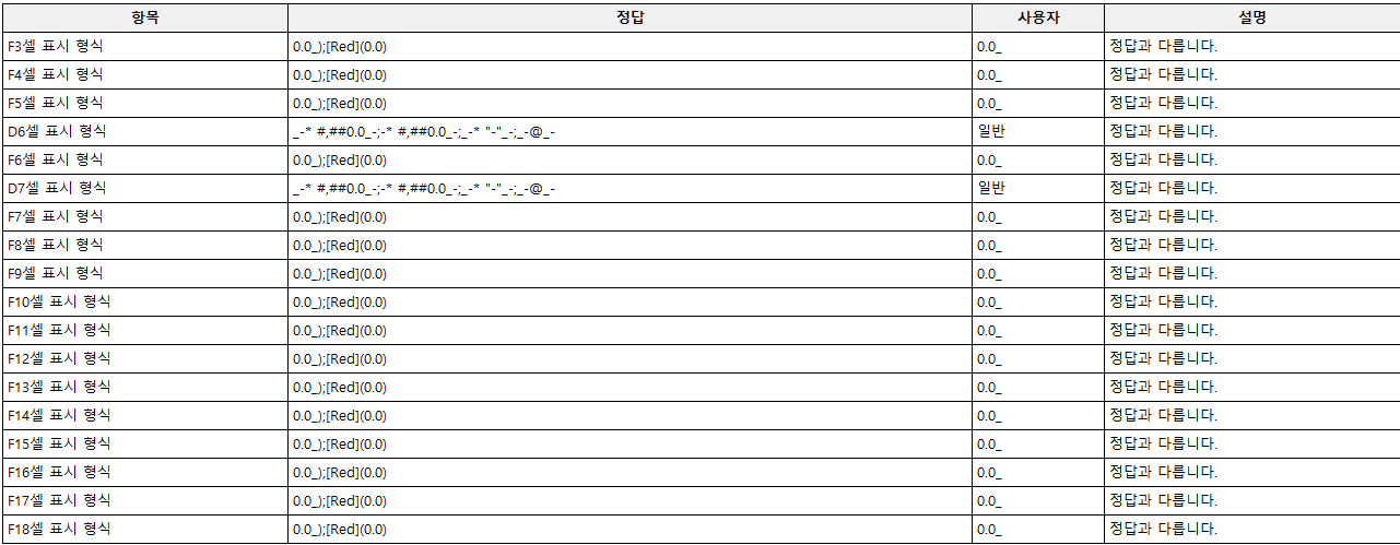 표시 형식의 경우 지시사항에 조건이 없다면 어떤 서식을 사용해도 출력형태와 동일하면 정답처리 하시면 됩니다.