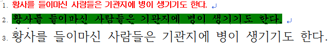 블록잡아서 글자모양을 바꿨을 때 문단번호에는 적용이 되지 않습니다.(아래 사진 참조)