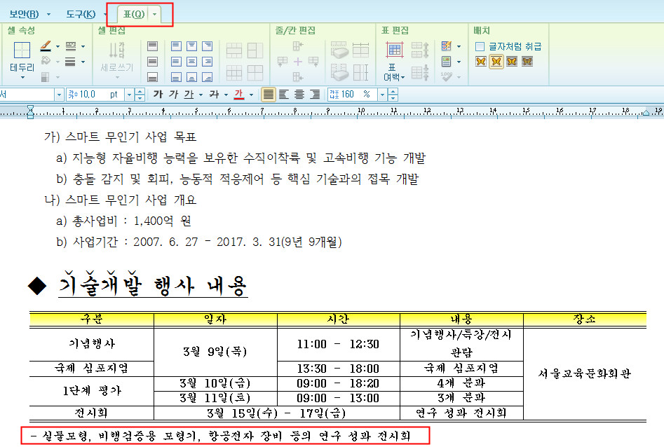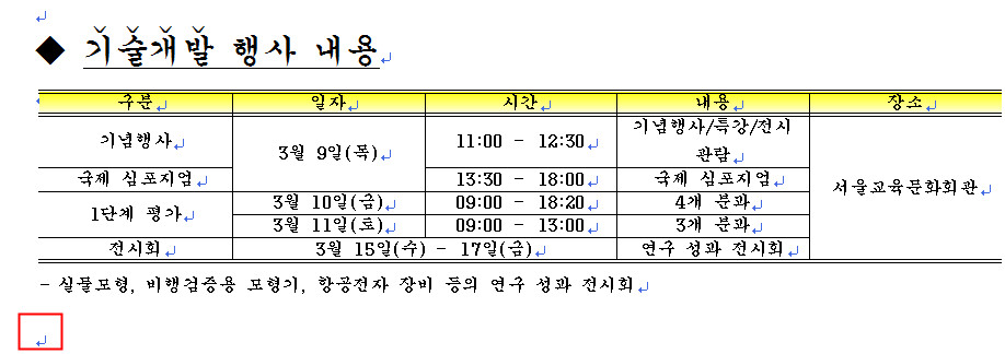 마지막 페이지 캡션(-실물모형, 비행검증용 모형기, 항공전자 장비 등의 연구 성과 전시회) 을 입력했는데 체점파일에는 쓰지 않았다고 뜹니다.