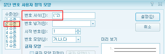 문단번호를 (1) (가).. 이걸로 선택했음에도 불구하고