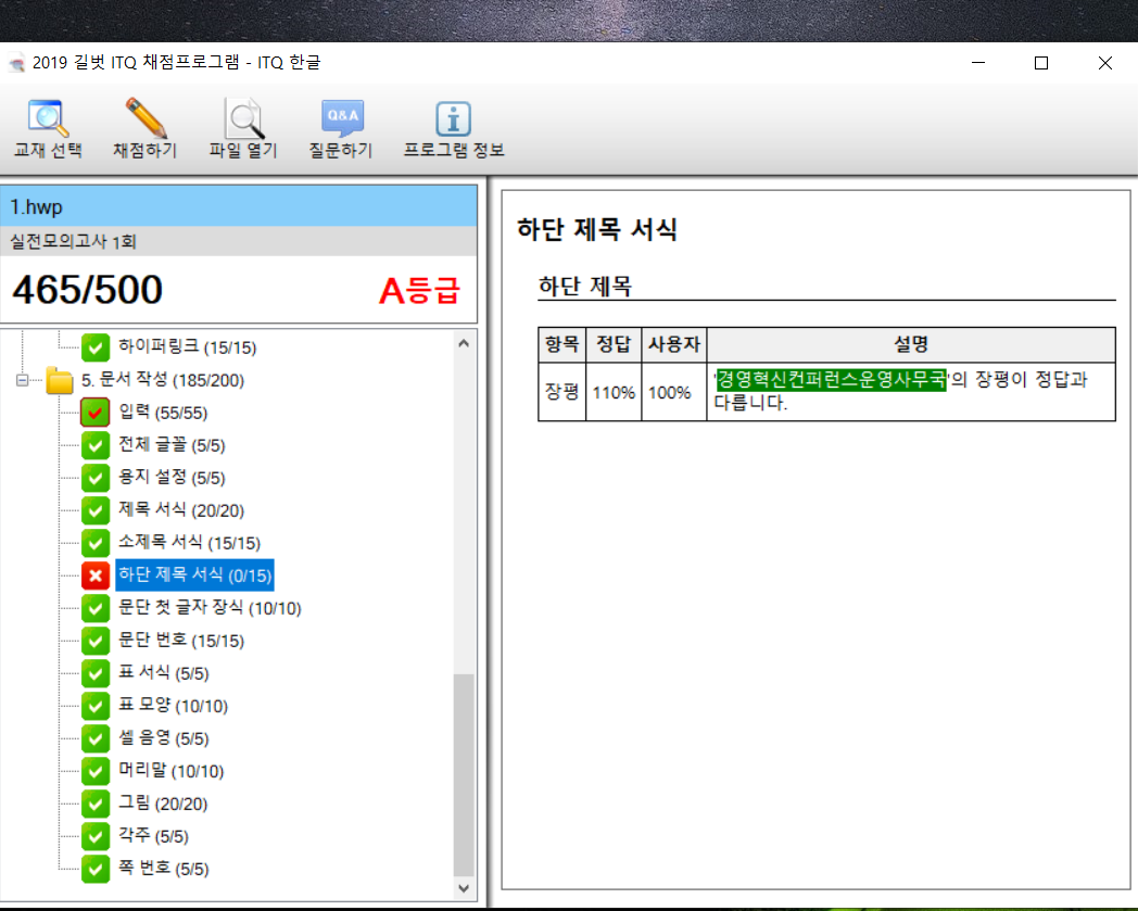 2. 하단제목 장평 110으로 되있는데 채점프로그램에서는 100으로 나와요