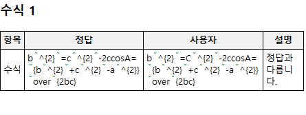수식 입력만 정확히 하셨다면 정답처리하시면 됩니다.