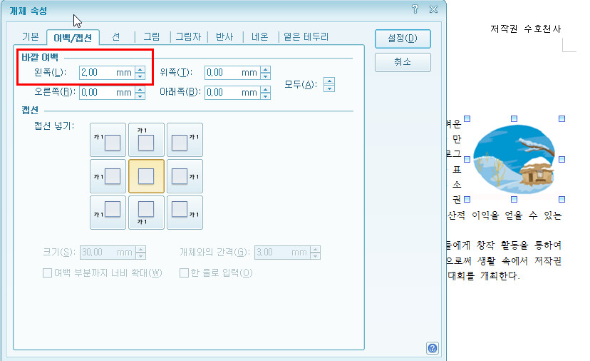 아래와 같이 정답파일에도 바깥여백 왼쪽 2mm가 지정되어 있습니다.