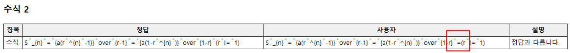 두 번째 수식에선 아래와 같이 '='을 입력하여 감점되었습니다.