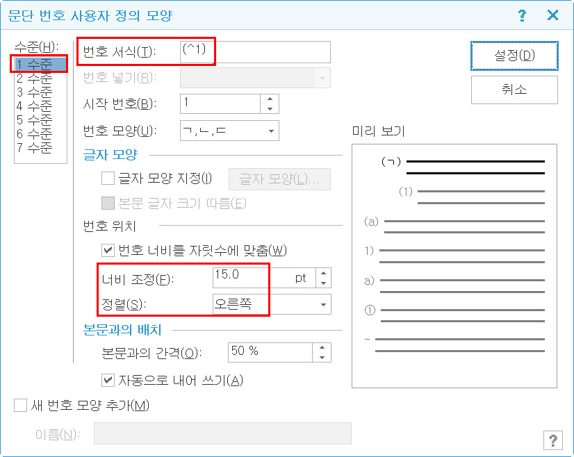 ( ) 를 사용하는 문단번호 기능은 어떤식으로 해야하나여?