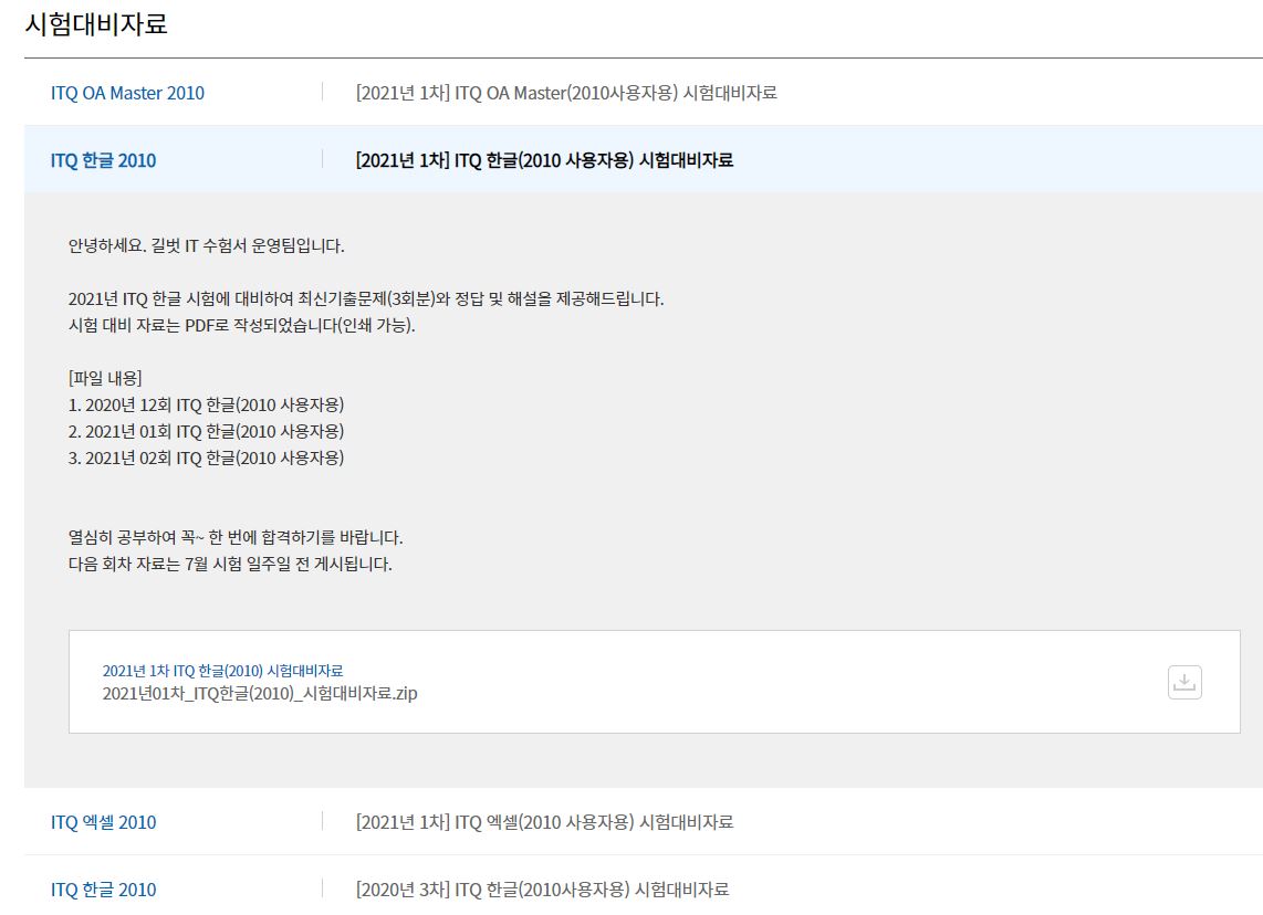 시험대비자료는 3월, 7월 ,11월 시험 일주일 전에 등록되고 있습니다.