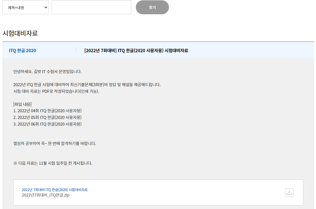 프리미엄존의 [2022년 7회대비] ITQ 한글(2020 사용자용) 시험대비자료를 다운하거나 볼수있는 부분이 활성화가 안되요.