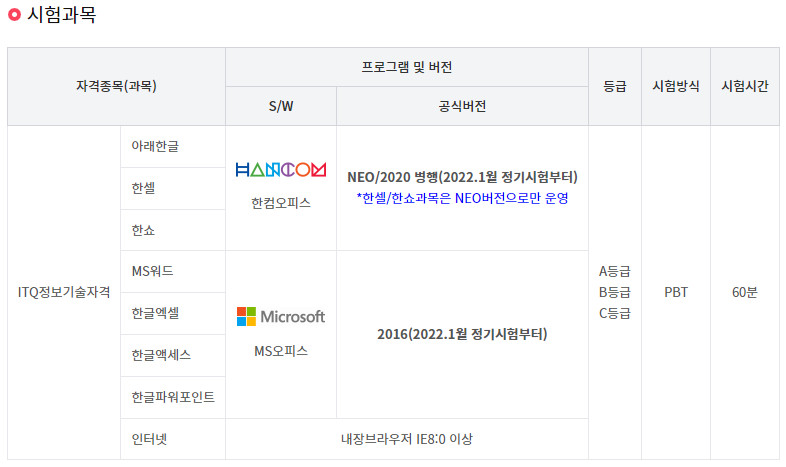 KPC 안내된 ITQ 시험 오피스 버전 알려드립니다.