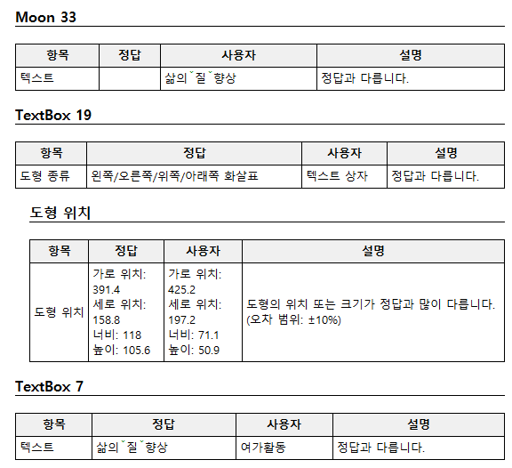 그리고 강의들을때는 사진과 비슷하게만 만들면 된다고 했는데 채점결과를 보니 도형에 글씨를 쓰는것과 글상자를 삽입해서 글씨를 쓰는게 달라서 틀린걸로 나오는데 어떻게해야하는건가요..?