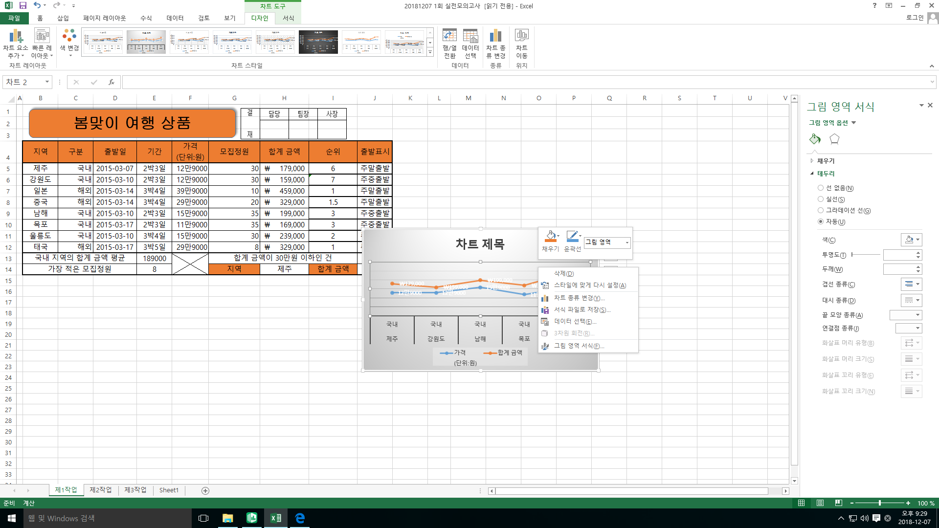 차트에서 특정 계열을 선택한 후 마우스 오른쪽 버튼을 클릭해보세요.
