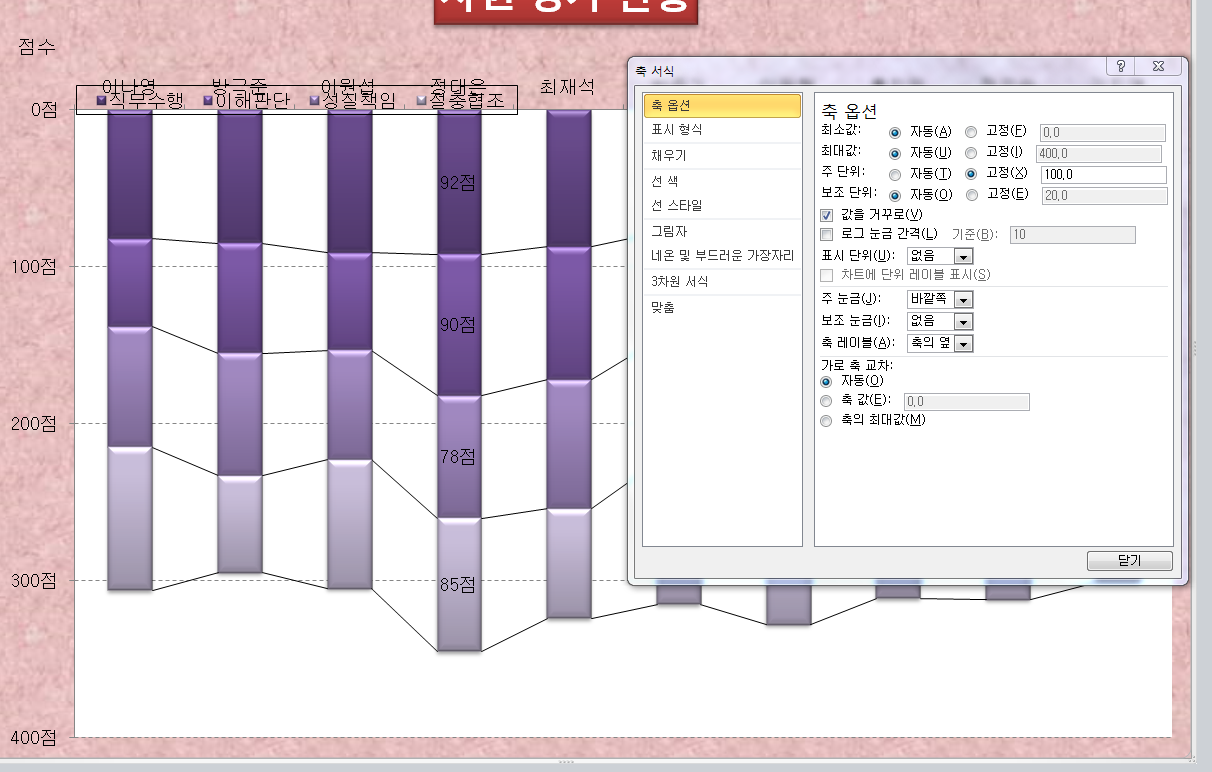 itq엑셀 실전모의고사 7회 그래프 좌우반전 어찌하나요...