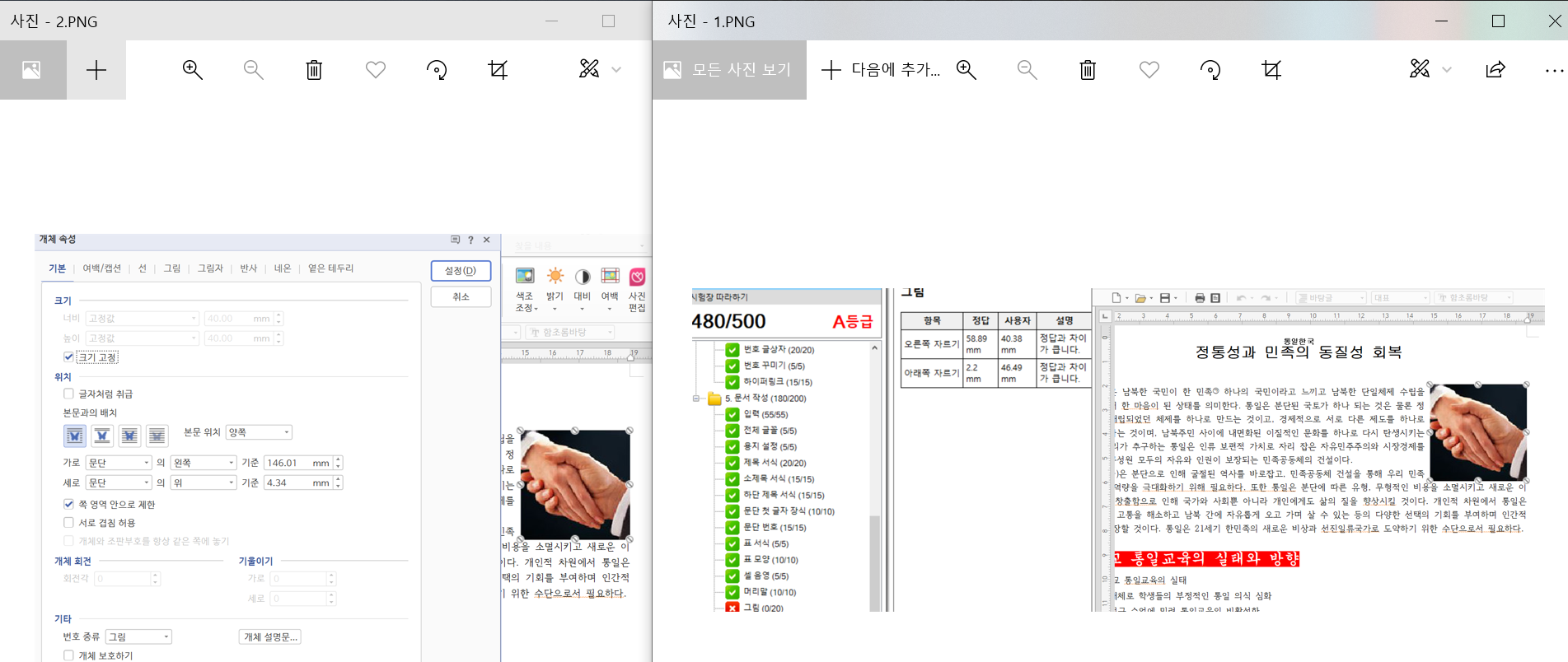 교재에 나와있는 것처럼 자르기를 이용하여 필요한 그림 부분에 딱 맞게 자르고 시험지에서 요구한 40x40 규격과 왼쪽 여백 2mm도 맞췄으며, 모든 것을 교재에 맞춰 하였음에도 계속해서 채점 프로그램에 틀렸다고 뜹니다. 이에 대한 구체적인 이유 및 채점 사유에 맞게 그림을 자를 수 있는 다른 방법이 있는지 궁금하여 질문드립니다.