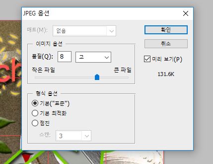 책에서는 JPEG 저장시 이미지옵션의 품질값을 8로 설정하는데