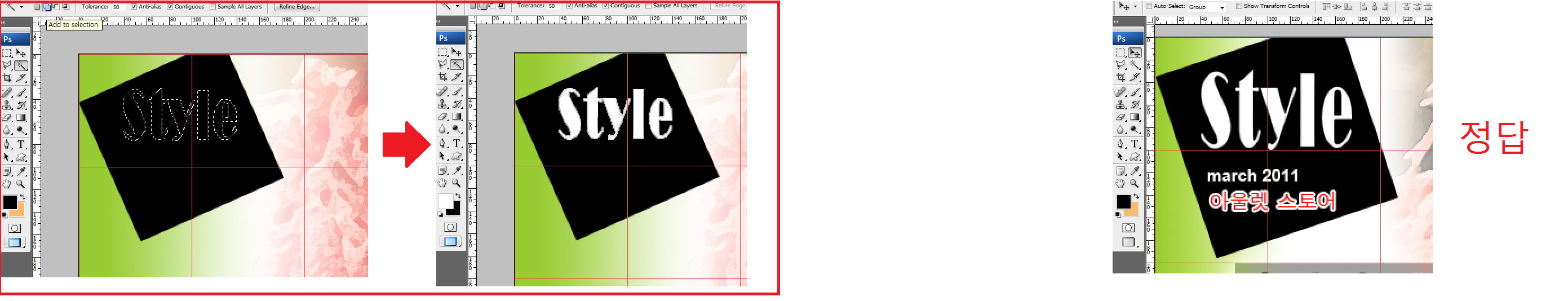 magic wand tool 로 style의 s 누르고 나머지는 add to selection 으로 style 다 선택해서