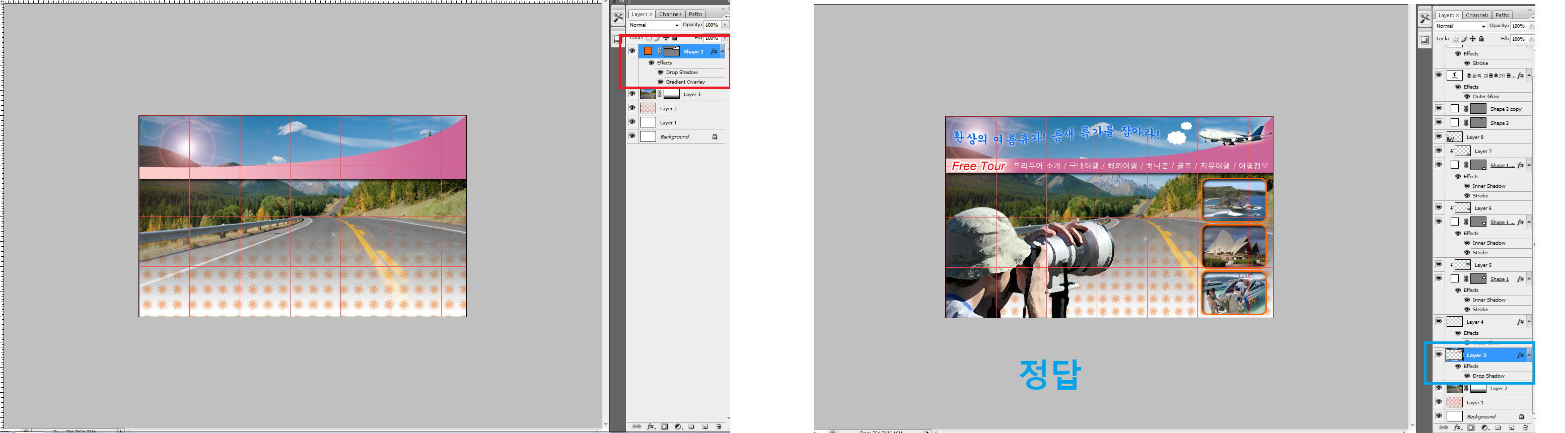 제가 첨부한 사진을 보면 그라디언트오버레이로도 만들어지던데 정답이랑 비교해보니까 사진은 비슷해도 빨간색네모체크 파란색네모체크한 부분이 다르더라구여 문제에서 그라디언트라고 했으면 그라디언트오버레이말고 그라디언트로만 해야 점수 안깍일까여?