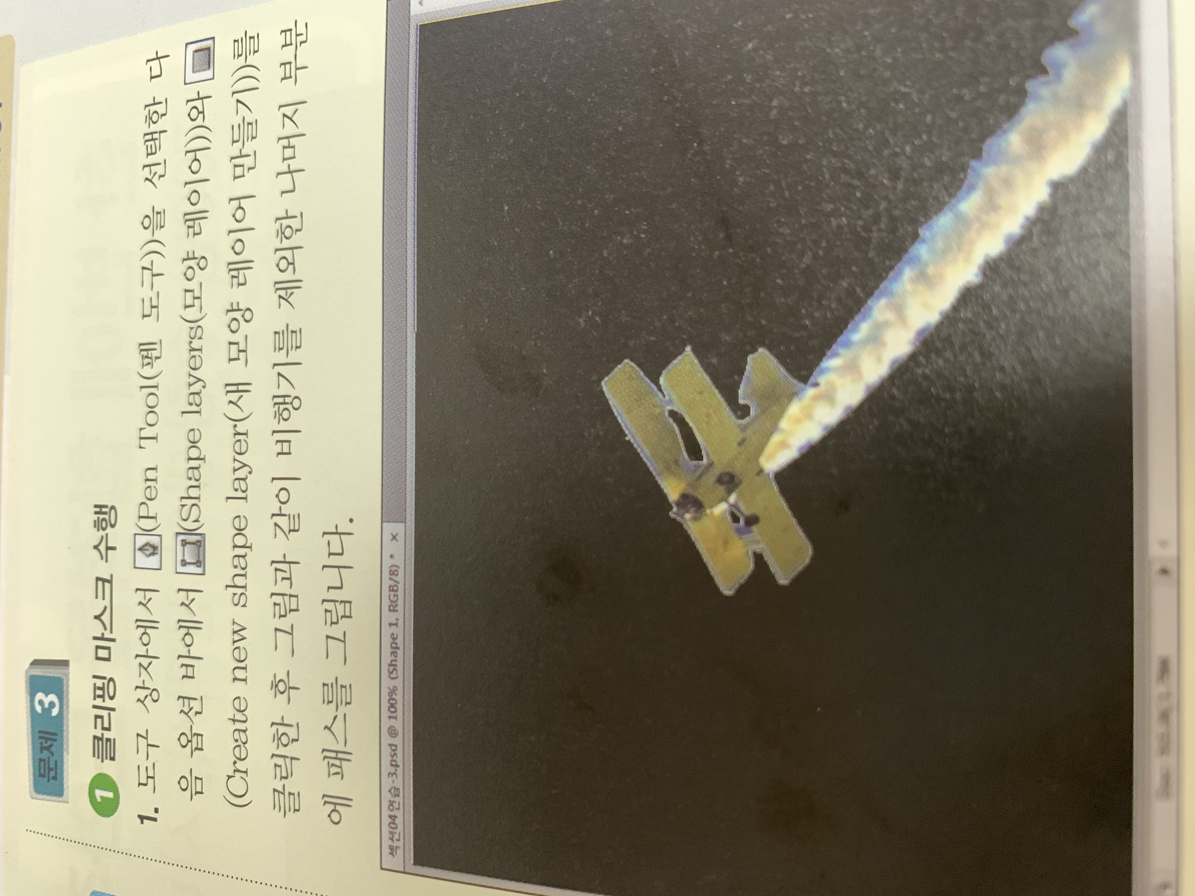 바깥 패스 그리고 어떻게 안쪽 패스 그리나요? 그리고 비행기 제외 부분 패스 그리려고 일단 비행기 테두리 따는데 왜 교재처럼 배경이 검정색이 안뇔까요? 반전해야하나요??