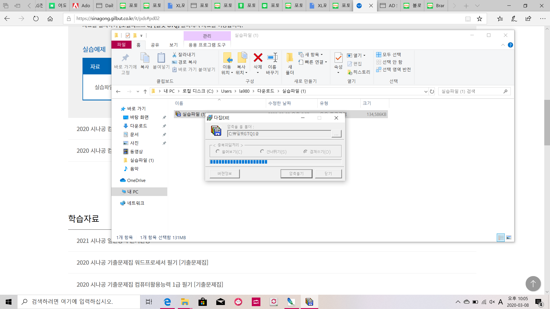 '길벗GTQ1급' 폴더가 자동으로 생성되었으며, 그 안에 실습용 파일들이 저장되어 있습니다.