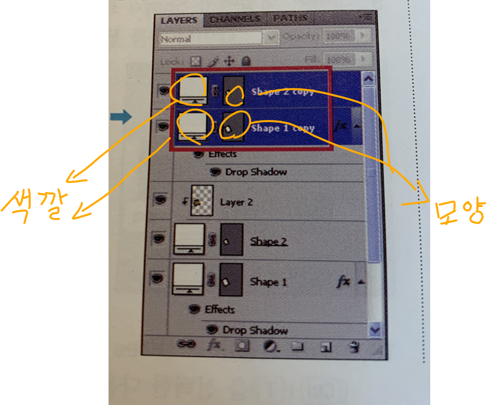 CS6를 사용해서 shape를 만들때 레이어에 사각형이 하나 생기는데 cs4를 사용하는 책에서는 shape를 만들 때 사각형 2개가 마스크형식으로 되어있더라고요,